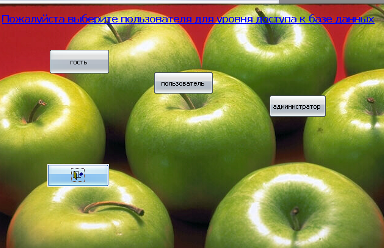 СУБД «Кондитерские фабрики Украины» работают различные пользователи. В зависимости от конкретного пользователя определяются уровни доступа для каждого. Выбор пользователя обеспечивается следующим образом: при запуске БД «Кондитерские фабрики Украины» открывается форма «Пуск» (рисунок 4.1) с кнопками 3 – х различных уровней доступа к данным базы: «Гость», «Пользователь», «Администратор».