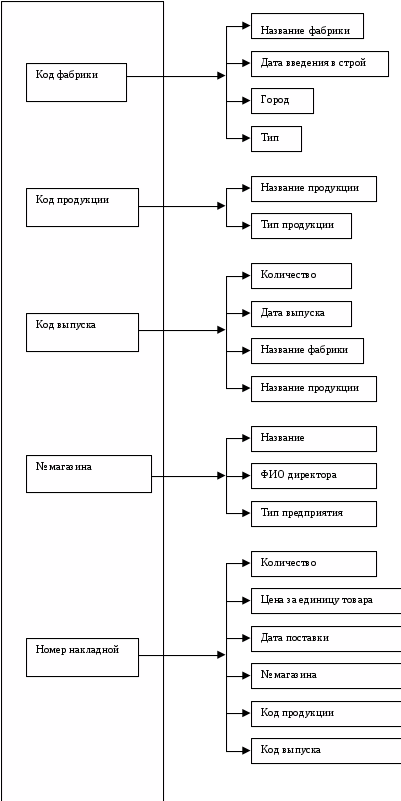 «Фабрика» имеет свойства – названии фабрики, дате введения в строй;
