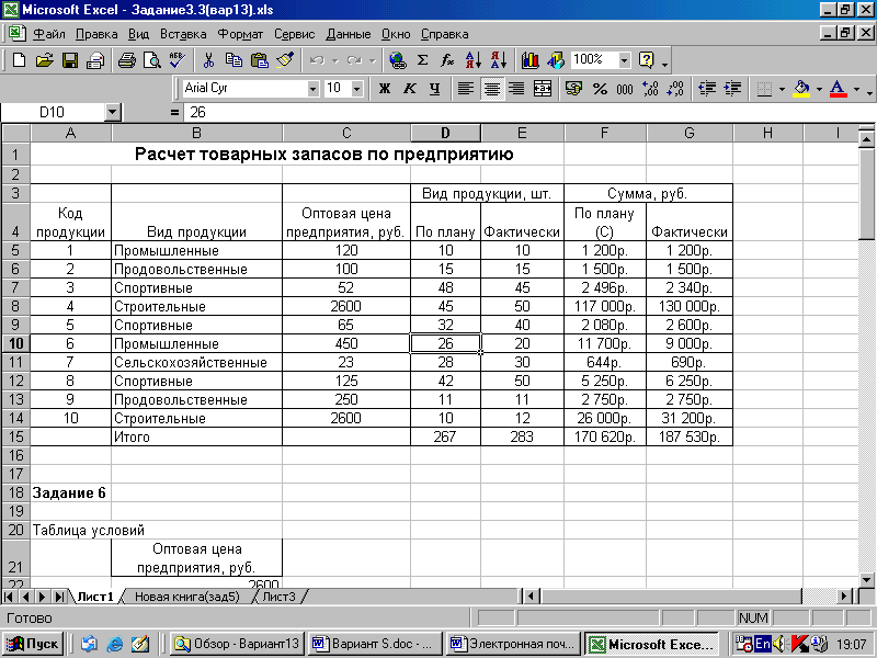 Заменить в графе Вид продукции слово Промышленные на Продовольственные с помощью команды Заменить