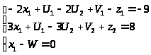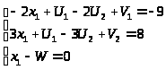 Для обращения неравенств системы в равенства введём V1, V2, W и преобразуем систему: