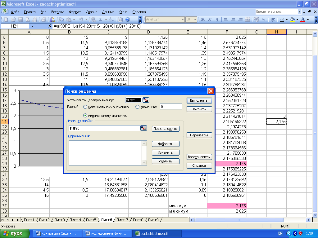 В данной работе требуется решить математическую задачу двумя способами, один - это привычный для нас вариант, с помощью математических исследований, а второй - с помощью специального офисного приложения MS Excel. Для этого нам необходимо: