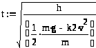 h=0.5.*((m*g-k2*V^2)*(t.^2))/m;