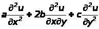 Это уравнение описывает стационарное поле некоторой физической величины и относится к уравнениям эллиптического, гиперболического или параболического типа в зависимости от значения определителя дифференциальной формы второй степени