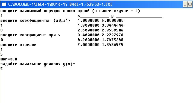 writeln('введите наивысший порядок производной (в нашем случае - 1)');