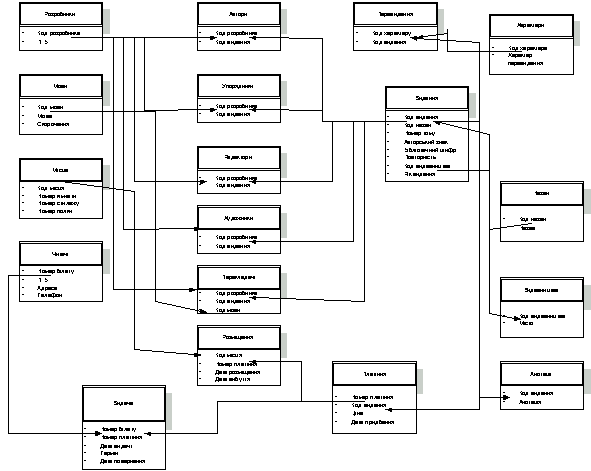 Художники містять номер запису, код видання, код розробника;