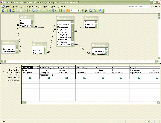 5. Якщо в основі запиту знаходиться декілька таблиць то потрібно встановити між ними зв’язки. Зв’язки між таблицями графічно представляються на екрані у вигляді ліній зв’язку.