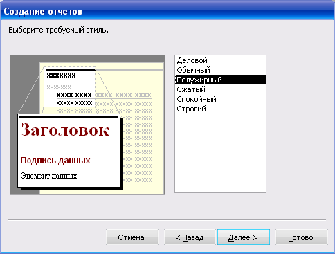 вибрати стиль звіту та натиснути далі (рис. 2.4.6).