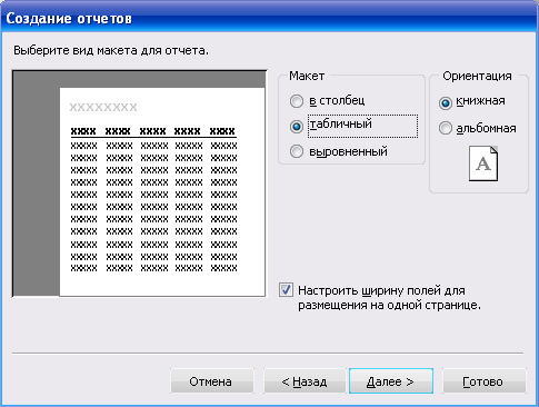 вибрати макет для звіту та натиснути далі (рис. 2.4.5).
