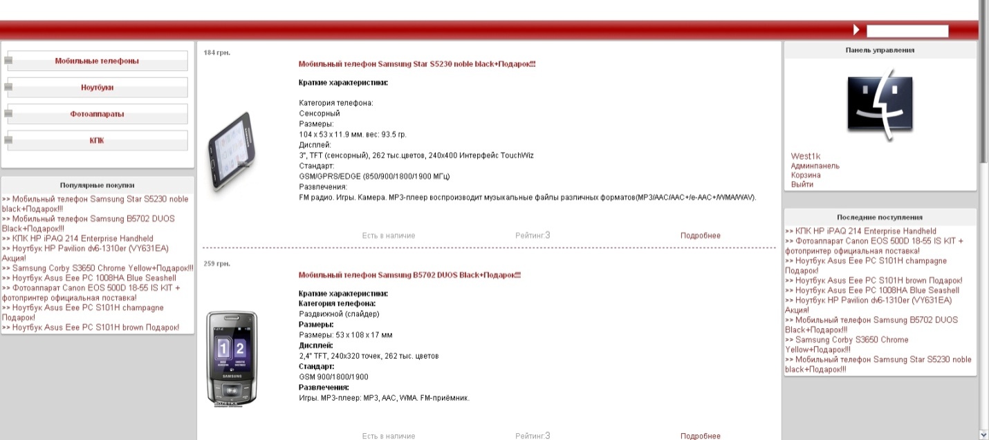 Крім того на сайті існує система рейтингу товарів, що задається кількістю додавань до корзини цього товару. Також користувач може у будь-якиий відмінити вміст корзини.