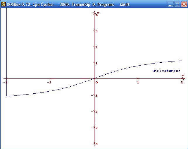 outtextxy(520,210,"y(x)=atan(x)");