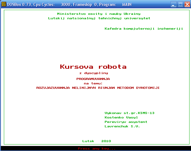 outtextxy(200,190,"Kursova robota");