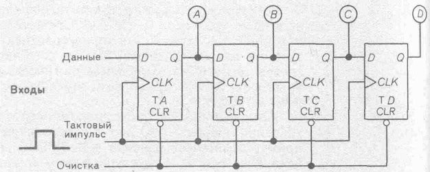 4-розрядного асинхронного лічильника з крізним переносом за модулем 16;