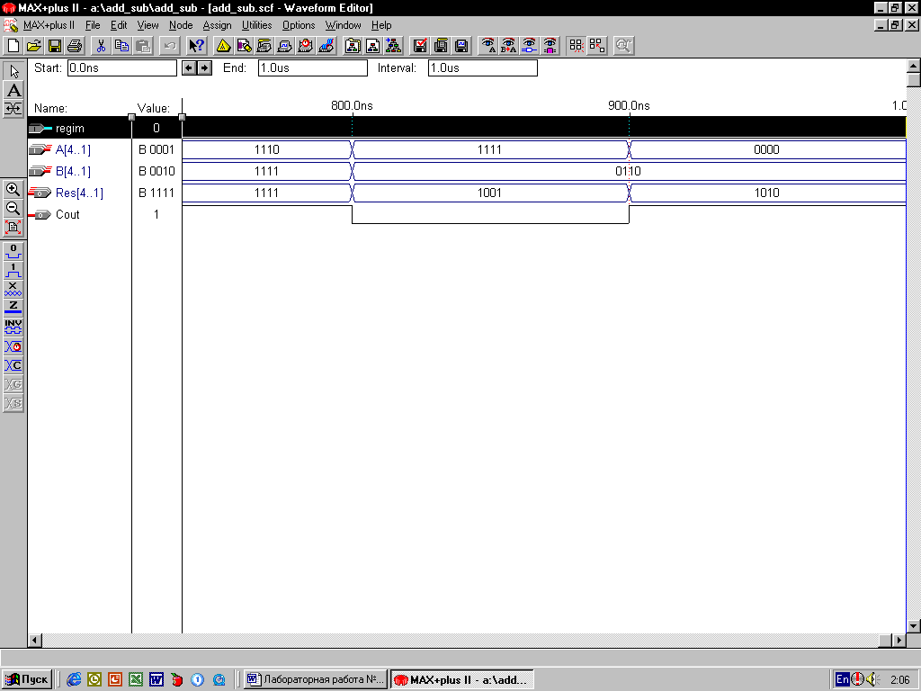 7.5.3 Програми реалізації суматорів, віднімачів в інтегрованому середовищі MAX+PLUS II