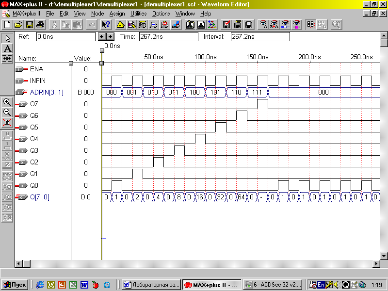 7.4.5 Програми реалізації мультиплексорів, демультиплексорів, шифраторів, дешифраторів в інтегрованому середовищі MAX+PLUS II