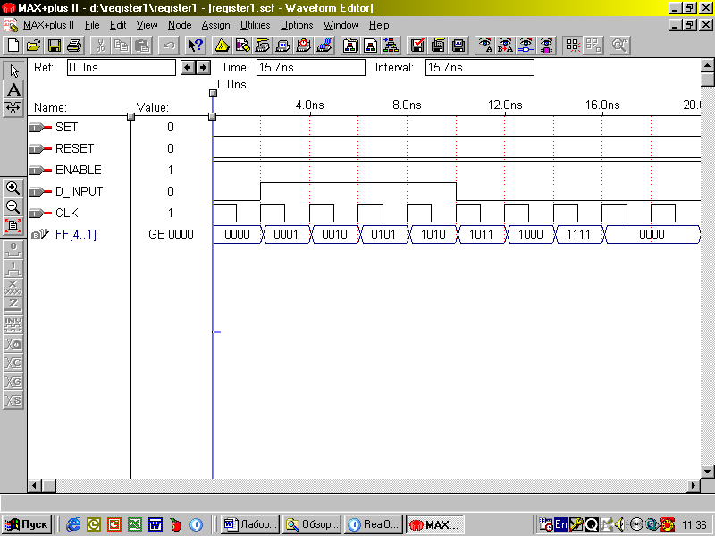 7.2.3 Програма реалізації регістрів в інтегрованому середовищі MAX+PLUS II