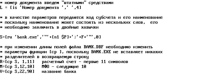 Распечатайте реестр введенных операций вместе с проводками, утвердительно ответив на запрос "Печатать с проводками ?". Если принтер не подключен, программа в "красной" строке внизу экрана "скажет": "Принтер не отвечает". В этом случае нажмите Esc, разберитесь с принтером (поставьте бумагу, включите в сеть, установите ONLINE) и повторите процедуру заново. Выбрав нужный пункт меню печати можно вывести реестр в обычный текстовый файл, доступный для редактирования и просмотра любым текстовым редактором, например, встроенным в Нортон Коммандер.