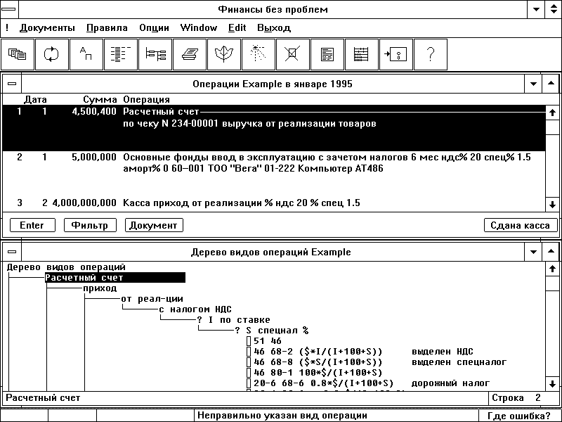 Закроем окно счетов и начальных условий и опять окажемся в окне реестра операций. Закроем и его.