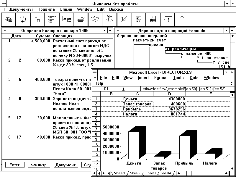 Разработчики "Хакерс Дизайн" реализовали совершенно иной принцип построения бухгалтерской программы. В "Финансы без проблем" были заложены совершенно непохожие на существовавшие до тех пор концепции автоматизации бухгалтерского учета.
