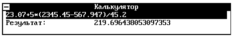 После вычисления курсор опять перешел в начало нашей формулы. Для повторных вычислений можно набирать новую формулу. Старая формула автоматически сотрется. Если Вам важно сохранить какие-либо ее фрагменты можно просто "подвигать" курсор вправо-влево. В этом случае старое содержимое не сотрется и Вы можете исправить его так, как нужно. При редактировании в калькуляторе и везде в программе поддерживается режим вставки. Для удаления ненужных символов в поле ввода можно использовать клавиши BackSpace или Del.
