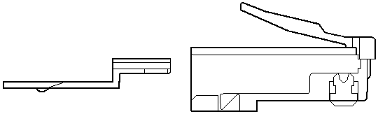Вилка "RJ-45" похожа на вилку от импортных телефонов, только немного большего размера и имеет восемь контактов