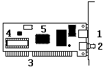 1 - Разъем под витую пару (rJ-45) 2 - Разъем для коаксиального провода (BNC) 3 - Шина данных ISA 4 - Панелька под микросхему BootrOM 5 - Микросхема контроллера платы (Chip или Chipset)