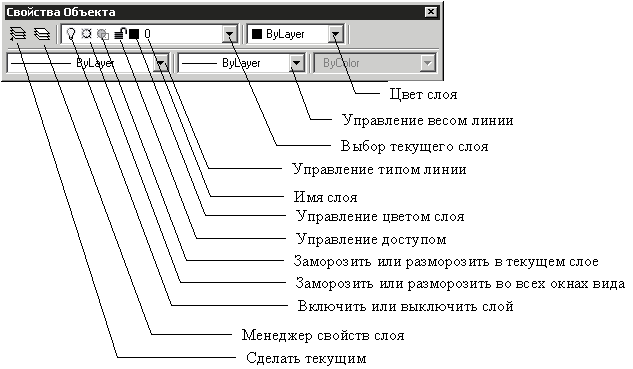 Всі примітиви AutoCad володіють рядом властивостей (колір, тип лінії, ширина. .). Деякі з цих властивостей (наприклад, колір) притаманні всім примітивам; є ряд примітивів зі своїми специфічними властивостями.