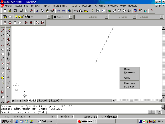 Command: Spesify next point or [Undo]: 150, 200 Enter