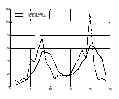 Изменим также цвет линии на красный, находя сперва дескриптор линии, созданной фун-кцией plot, а затем установив требуемое свойство линии Color property. В том же выраже-нии установим толщину линии LineWidth равной двум точкам