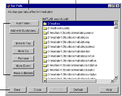 При вызове, система MATLAB автоматически выполняет главный М-файл (master M-file) matlabrc.m., и файл startup.m (есди последний существует). Файл matlabrc.m, которые расположен в директории local, зарезервирован фирмой The MathWorks, а в многопользова-тельских системах может быть использован также системным менеджером. Файл startup.m предназначен для задания ряда стартовых опций (возможностей) по усмотрению пользователя. Вы можете изменить исходные пути доступа (см. далее), ввести заранее определенные переменные в рабочее пространство, изменить текущую директорию и т.д. Стартовый файл startup.m следует ввести в директорию $matlabroot\toolbox\local (более подробно с данным вопросом можно ознакомиться в справочных пособиях по MATLAB-у).