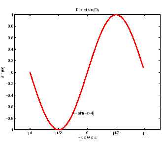 text(-pi/4, sin(-pi/4), '\leftarrow sin(-\pi\div4)', 'HorizontalAlignment', 'left')