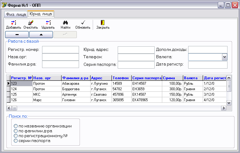 Оперативна база даних договорів і поставок (DOHOVOR.dbf):