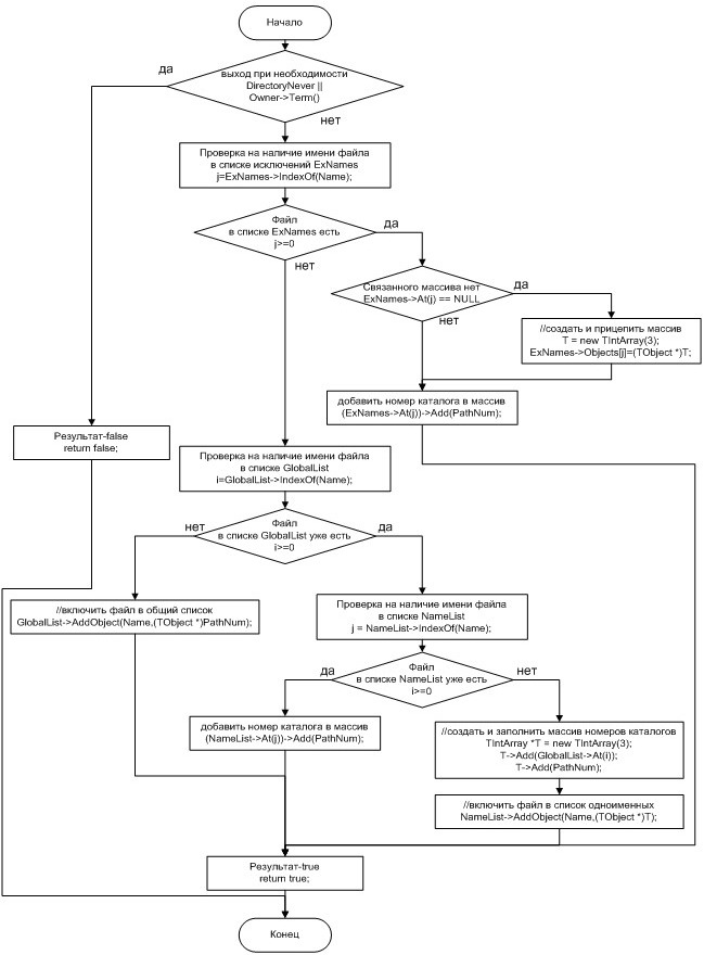 bool __fastcall TVerDirectory::WorkFile(int PathNum,AnsiString Name) Проверка-регистрация в отчете файла (по имени и номеру подкаталога). При изменении состава файлов(взведен DirectoryNever) или при завершении родительского потока - досрочный выход с результатом - false |