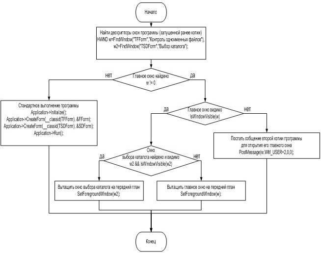 void __fastcall TFForm::FormActivate(TObject *Sender) Обработчик OnActivate формы (работает только при запуске программы). Регистрирует значок в System Tray, инициализирует переменные, загружает из файла «FileNames.inf» (если он есть) путь к контролируемому каталогу и список файлов-исключений, и запускает потоки контроля и проверки. |
