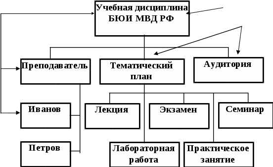 Таким образом, одна «таблица» может содержать данные о курсантах, другая - о преподавателях, третья - об изучаемых дисциплинах. Эти наборы состоят непосредственно из данных, организованных в «записи», содержащих данные одного смыслового типа. Так, в случае с таблицей курсантов, каждая запись может содержать данные отдельного субъекта (например: ФИО, взвод, спец. звание, дата рождения и т.д.). Записей может быть неограниченное количество. Каждая отдельная часть информации в записи (например, «город» в записи курсанта) называется полем и служит не только для того, чтобы что-то сообщить о записи, но также определяет способ группирования записей в таблице. Примером могут служить все курсанты из таблицы, живущие в определенном городе. Если обрабатываемая база данных включает несколько взаимосвязанных таблиц, то необходимо определение ключевого поля в каждой таблице, а также полей, с помощью которых будет организована связь между таблицами. Создание структуры таблицы не связано с заполнением таблиц данными, поэтому эти две операции можно разнести во времени.