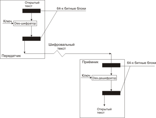 Реализация алгоритма DES – режим работы ECB (электронный блокнот). |