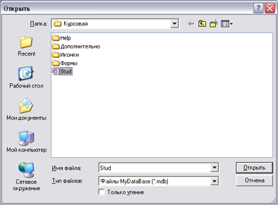 3.2.4 Открытие базы данных