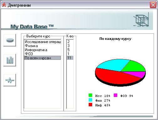 Возможность построения диаграмм для наглядного представления сведений, приведенных в базе данных.