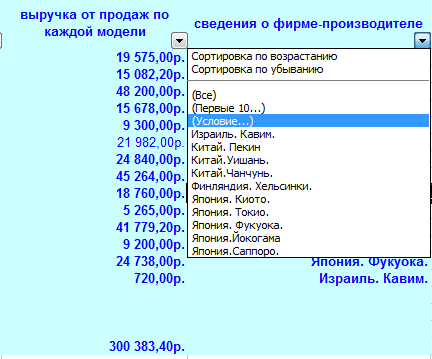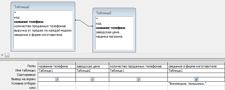 Затем, в столбце под названием «Сведения о фирме-изготовителе» и в строке «Условие отбора» пишем страну. Например, Финляндия. Хельсинки.