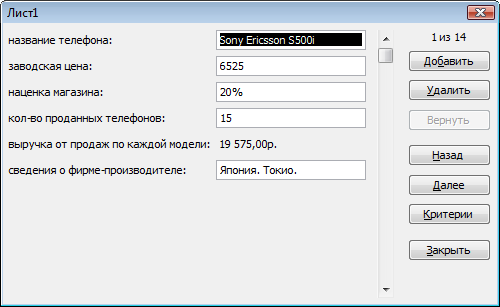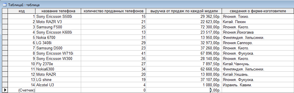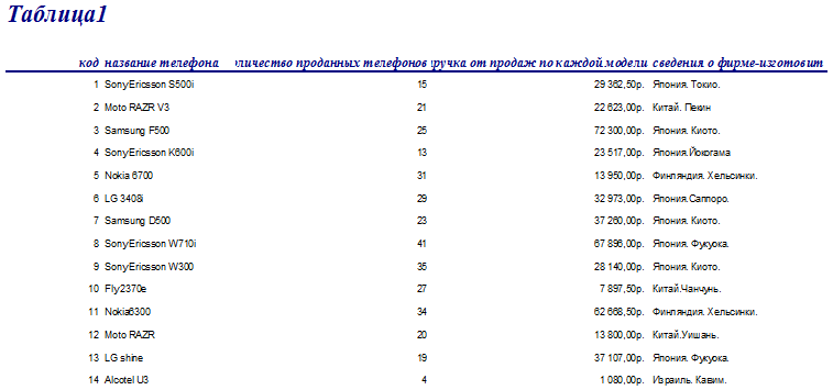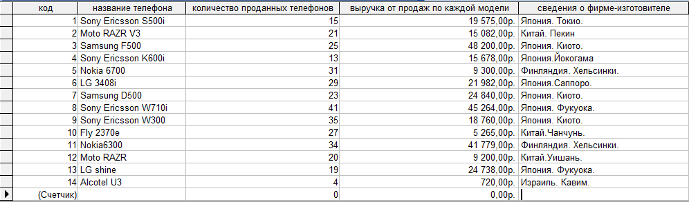 Например, мы вводим страну-изготовителя. И в таблице выводится список телефонов, произведенных в указанном месте.