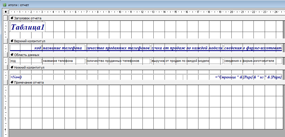 Выберем стиль отчета (деловой), щелкнем Далее, зададим имя отчета Название телефонов и щелкнем по кнопке Готово.