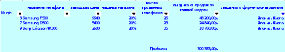 3. Вычисление прибыли, полученной магазином от продажи телефонов.