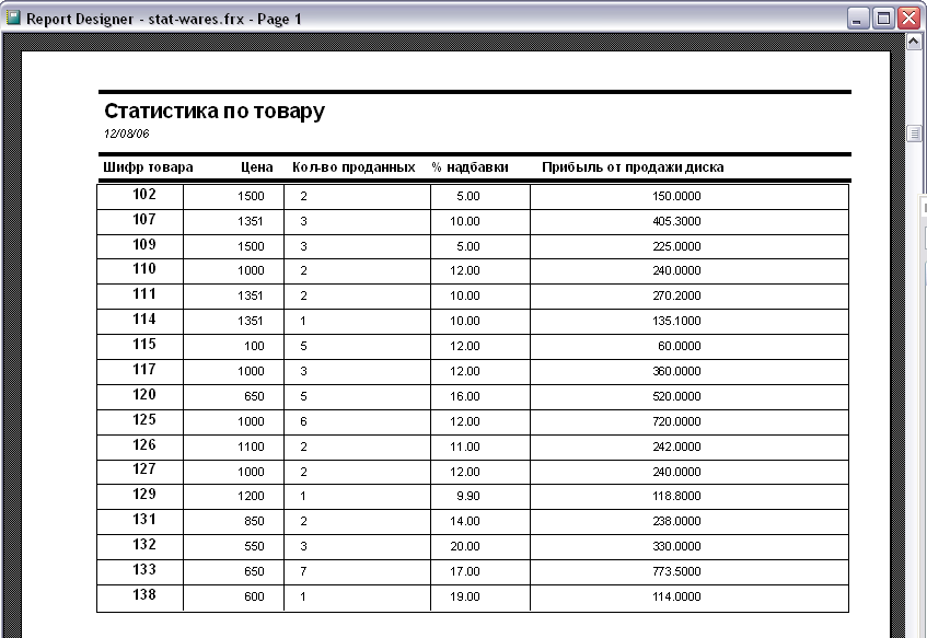 Одной из основных задач создания и использования баз данных является предоставление пользователям необходимой информации на основе существующих данных. В базе данных "Товары-почтой" используются табличные отчеты. Все отчеты были построены с помощью Мастера отчетов и в последствии отредактированы в конструкторе отчетов.