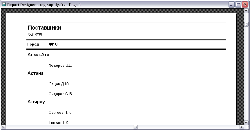 Выдать списки поставщиков в разрезе "Город".