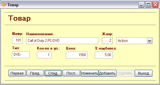 вызывает форму "Товар" |