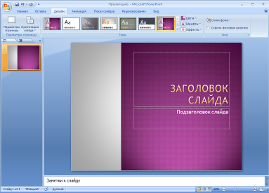 Под главным окном находится Панель заметок, с помощью которой к любому слайду презентации можно добавить заметки.