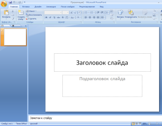 Новая презентация открывается в главном окне, и вы можете редактировать пустой слайд заголовка.
