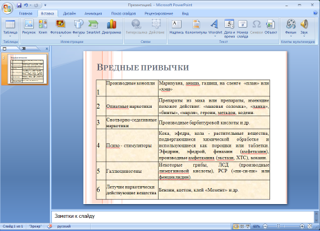 4. Переключиться в режим просмотра слайдов и найти слайд, в который мы хотим вставить таблицу, или создать новый слайд с использованием кнопки Создать слайд.