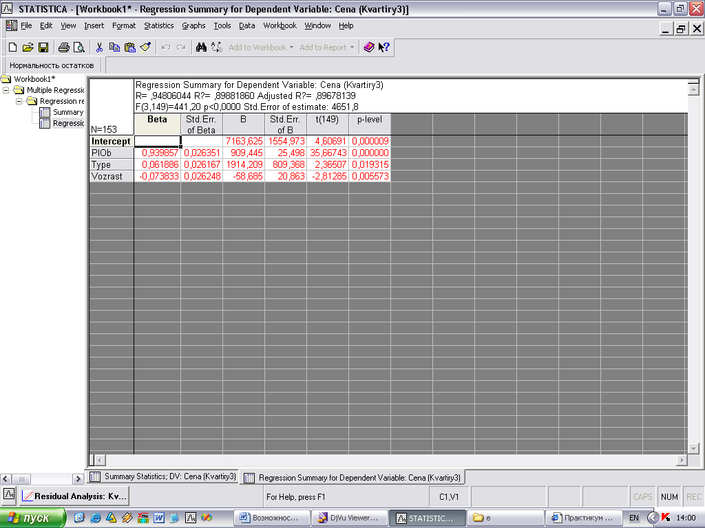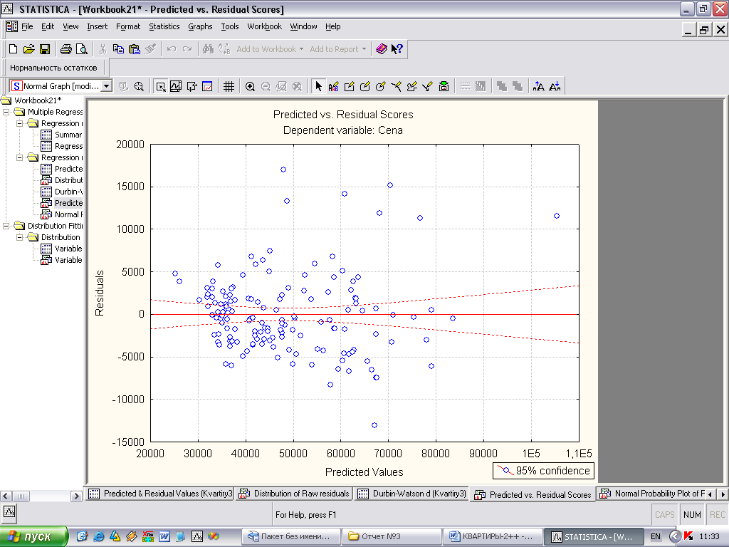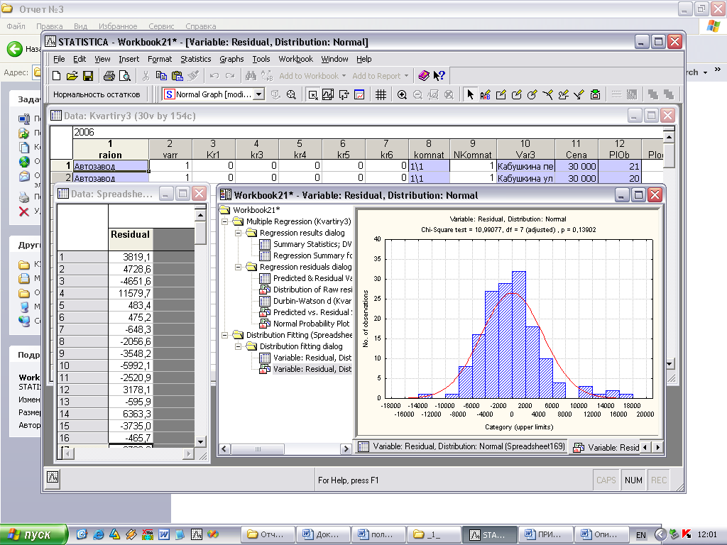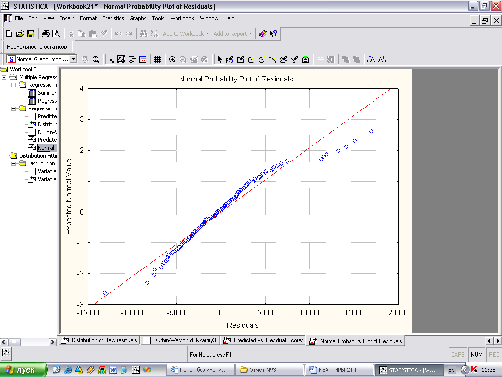 2.3. Проверка гипотезы о нормальности остатков в модуле MULTIPLE REGRESSION STATISTICA