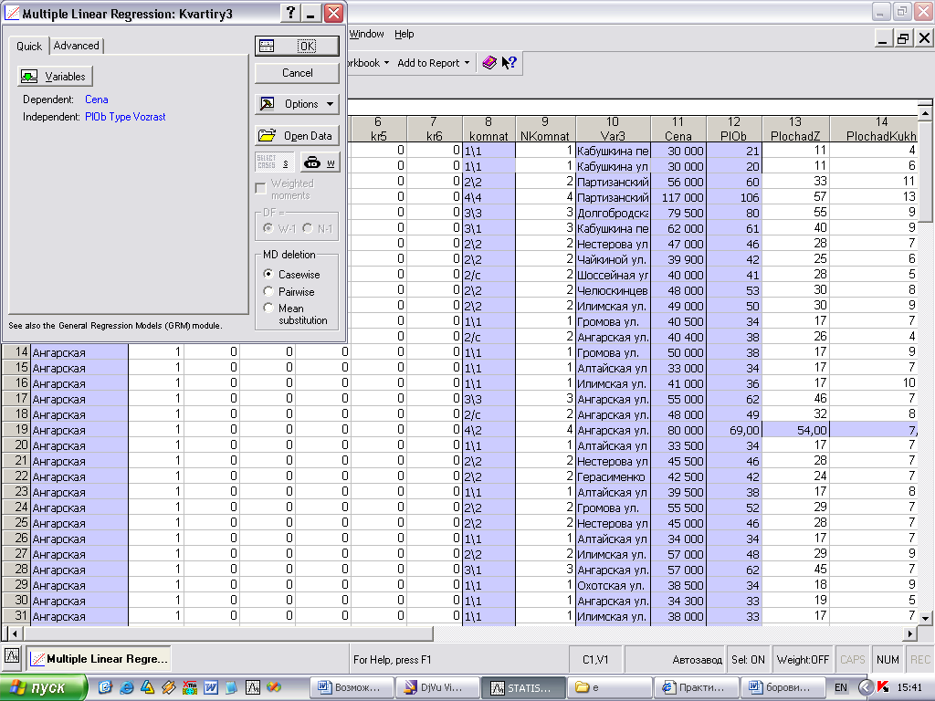 2. ПРЕДПОСЫЛКИ МЕТОДА НАИМЕНЬШИХ КВАДРАТОВ И ИХ РЕАЛИЗАЦИЯ В STATISTICA