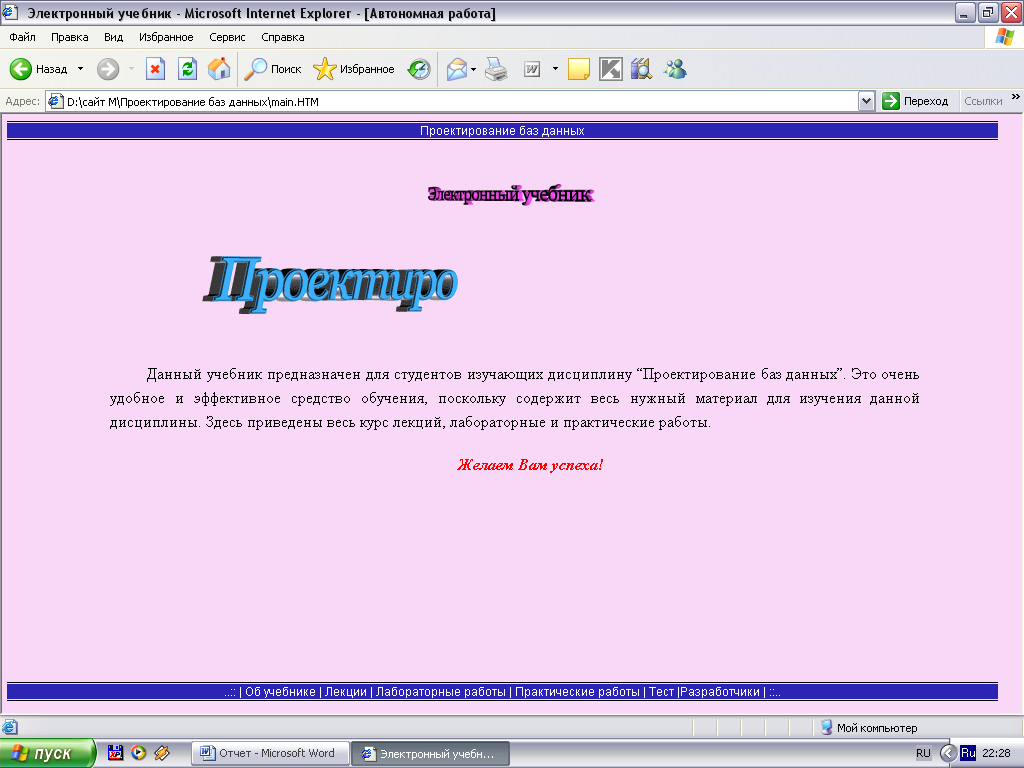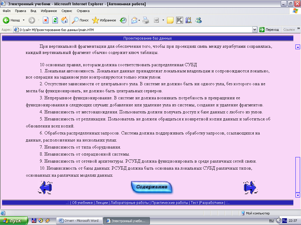 Создание мультимедийного электронного учебника "Проектирование баз данных"